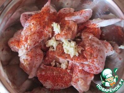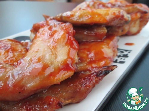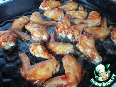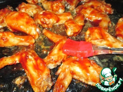 Опять вынимаем, переворачиваем крылышки и смазываем другую сторону соусом. Опять ставим в духовку на 5-7 минут