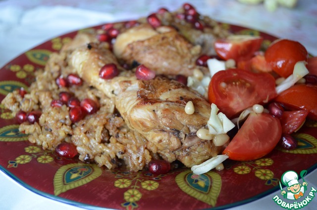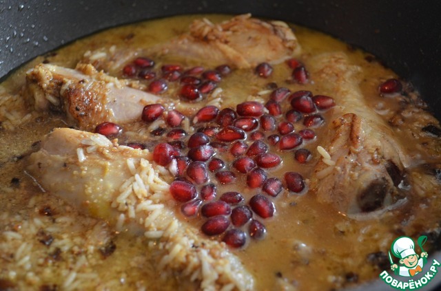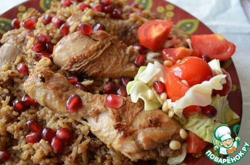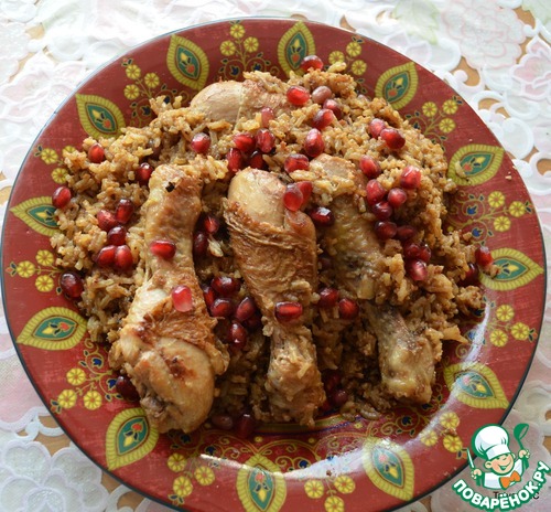 | Приглашаю вас сегодня отведать вкусный иранский плов с курицей, гранатами и орехами. Яркий, красивый, вкусный. Восточная кухня так соблазнительна, не правда ли? |