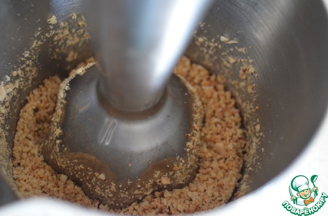 Орехи слегка обжариваем и пробиваем блендером. Добавляем 100 мл. воды или бульона, накрываем крышкой и варим на медленном огне минут 20.