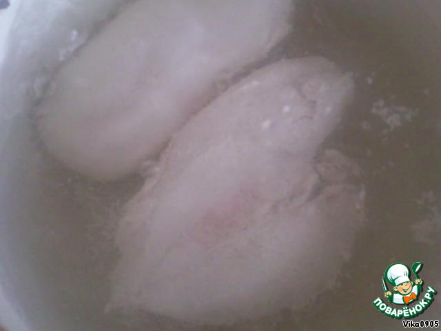 Отвариваем филе в подсоленой воде.
