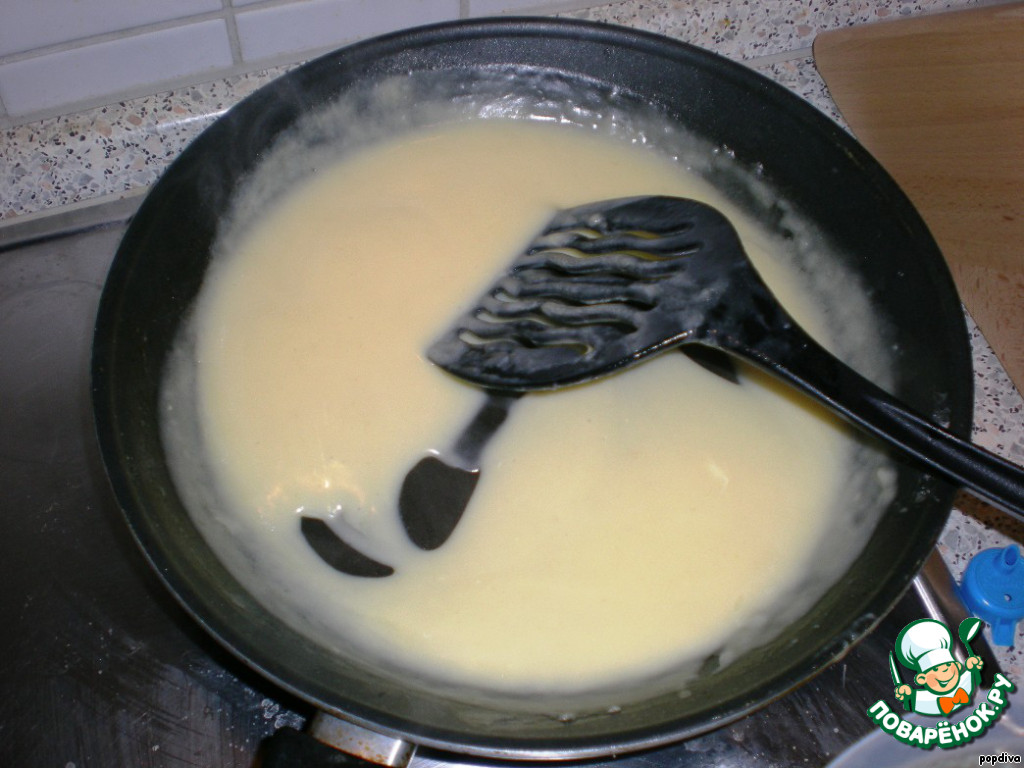 На сковороде в растопившемся масле спассеровать муку, постоянно помешивая. Влить бульон, продолжая помешивать до образования равномерной массы. Смешать желток и сливки и добавить, опять же помешивая, к соусу. Если выходит несколько густо, то подлейте еще немного бульона.