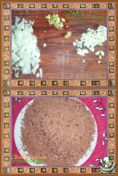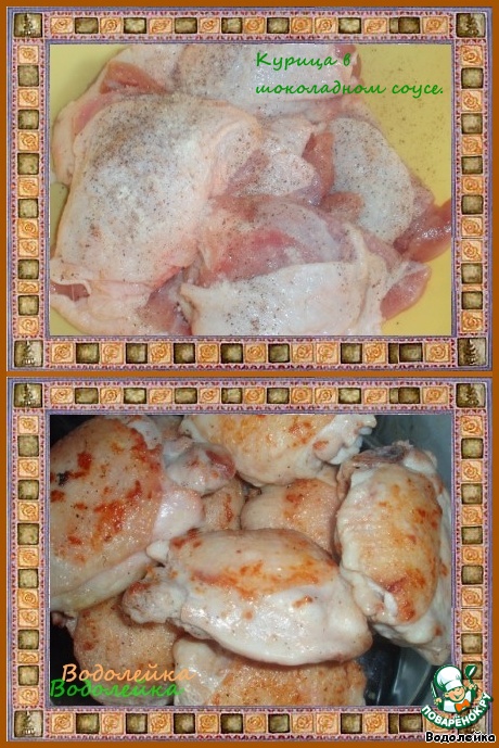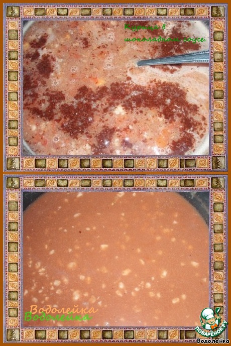 | Этот рецепт из "Коллекции рецептов Школы Гастронома". Распечатала его давно, но никак не решалась его сделать. А потом подумала: а почему бы и нет. Ведь я пробовала куриную грудку в какао (рецепт Лейлы), курицу в кофе (тоже рецепт с нашего сайта), надо попробовать сделать и с шоколадом. Решила - сделала. Соус получился очень ароматный, присутствует запах шоколада, но..... когда кушаешь, то очень сложно определить его наличие. А в сочетании с курочкой - это просто сказка(имхо). Блюдо понравилось всей нашей семье. |