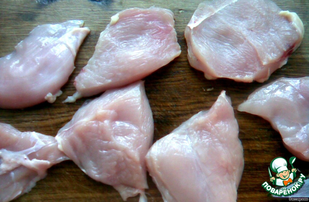 Подготовим куриное филе - помоем и нарежем на небольшие ломти.