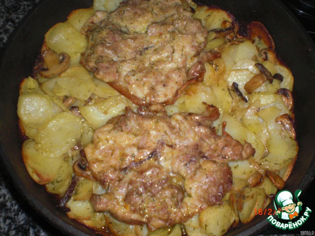 | Это прекрасный вариант обеда или ужина, отбитая курятина с картошкой и грибами. Нам ну оооочень понравилось! |