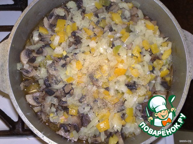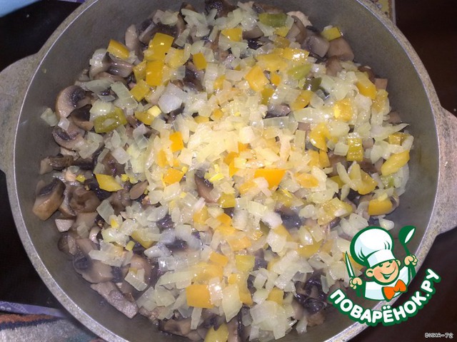 Лук и перец режу меленько, чуть-чуть обжариваю