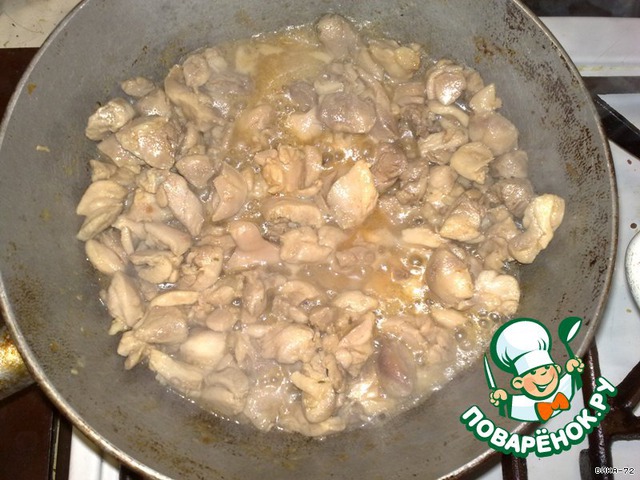 Куриное филе режу, обжариваю с добавлением приправы для курицы (у меня "KNORR"), перекладываю в кастрюлю