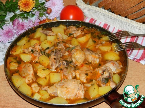 ... за это время почистим, помоем и порежем крупно картофель. Добавим к курице.