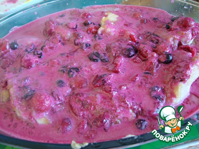 | Сочная курочка просто тает во рту, кисло-сладкий, нежно-сливочный соус придает неповторимый вкус и аромат... Очень много блюд из курицы со сладкими соусами, но вот с ягодками я еще не пробовала. Идейку позаимствовала в "Школе гастронома", но маленько переделала под свой вкус. Попробуйте! |