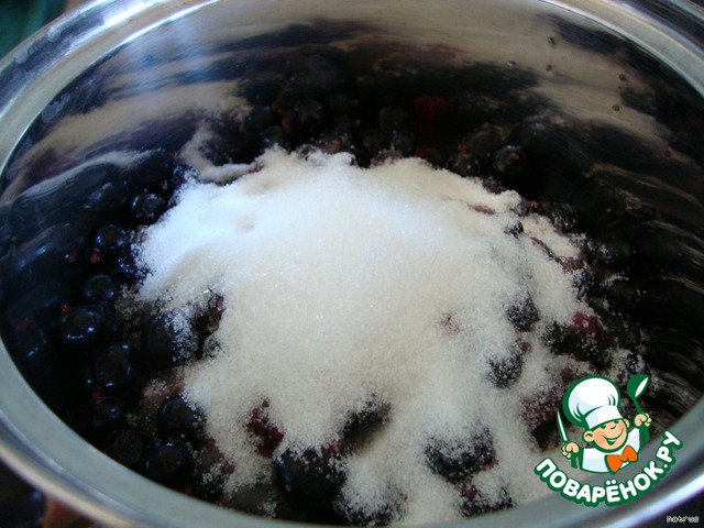 Черную смородину и крыжовник вымыть, положить в кастрюльку, добавить сахар и пару столовых ложек воды, немного помять, чтобы половина ягод остались целыми, довести до кипения, убавить огонь и варить 5 минут