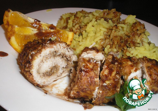 | Куриные рулеты с начинкой из меда и грецких орехов, с соусом из апельсина, коньяка и шоколада. Для тех, кто любит сладкое :) Это блюдо может быть приготовлено с помощью кухонных помощников Scarlett. |