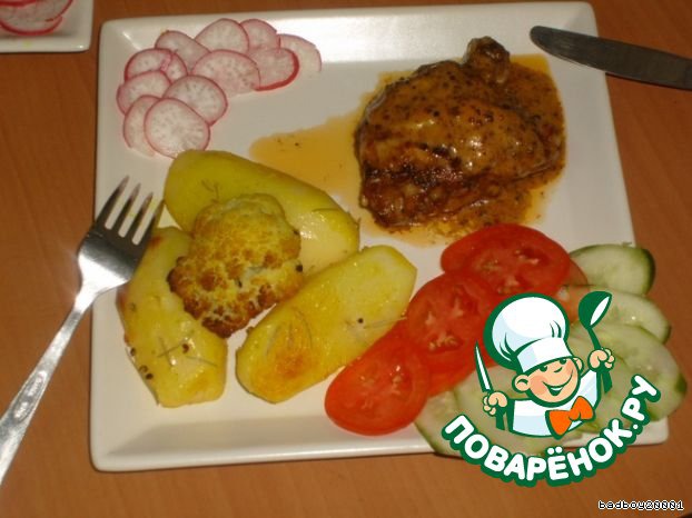 противень с курочкой отправляем на последнюю экзекуцию в духовку на 15 минут, 200 град