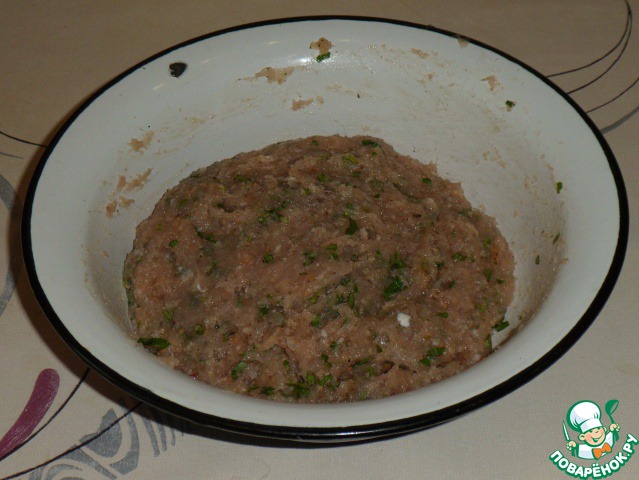 В фарш добавить хлебные крошки (из черствого белого хлеба), соль, перец и 1 сырой желток. Плюс зелень петрушки и укропа, мелко нарезанная. Хорошо вымешать и отбить, с силой кидая в миску не менее, чем 25 раз. Затем убрать в холодильник на полчаса-час.