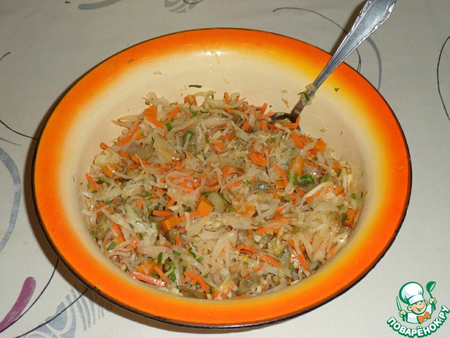 Баклажаны очистить, нарезать кубиками, посолить и отставить на полчаса. Затем промыть, отжать и слегка обжарить. Морковь и сельдерей очистить и нарезать соломкой, лук измельчить. Капусту нашинковать соломкой, обдать кипятком и сразу же холодной водой. Обжарить морковь, лук и сельдерей. Капусту обжарить до полуготовности, посолить. Все овощи смешать.