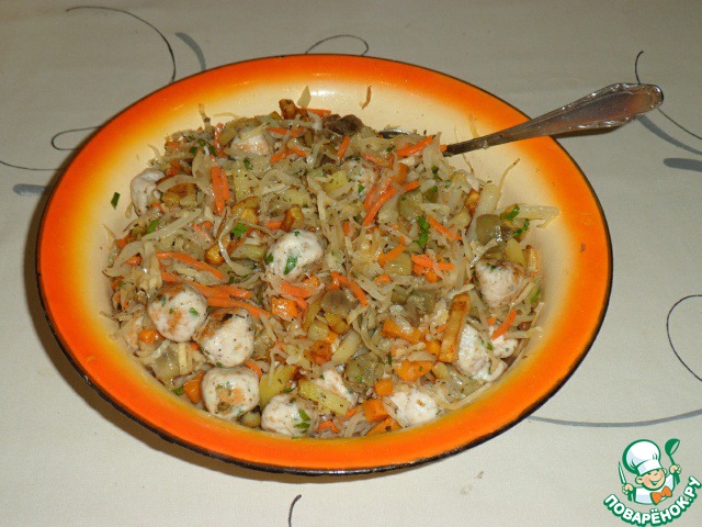 Добавить фрикадельки к овощам, перемешать.