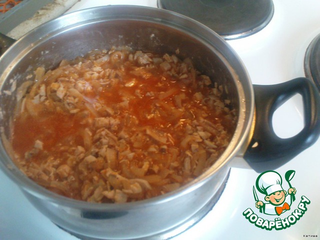Изначально, до тушения, может казаться, что заливки мало, но это иллюзия :) лук уварится и всё станет пропорциональным
