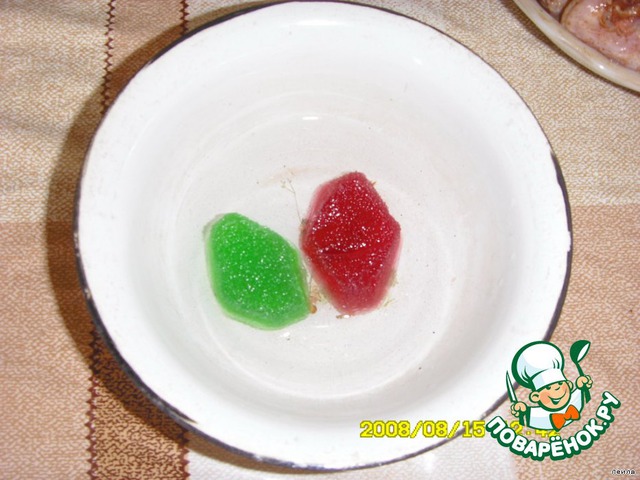 Соус: в мармелад (лучше если будет апельсин) наливаем воду (пол.чашки), ставим варить до растворения. Остужаем, кладем лимонный сок и горчицу. Процедить