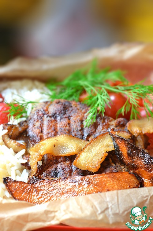 | В детстве мои родители часто делали цыплят-табака и всегда это блюдо у меня ассоциировалось с каким-то праздником. Сейчас "праздники" я себе устраиваю сама, причём не на плоской сковороде, а не сковороде - гриль. Мясо получается остренькое, с гофре - корочкой. Улёт! |