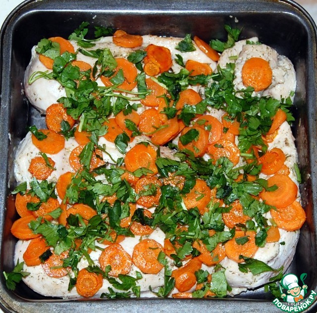 | Нежное, ароматное филе курочки, запечённое в духовке с пивом, морковочкой и укропом! Ммм! Доступные продукты, все очень просто и вкусно! |