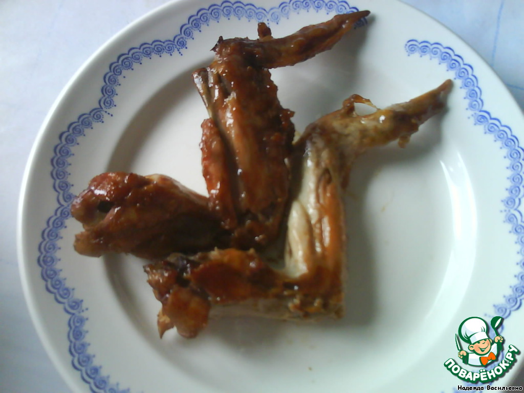 | Я не любитель куриных крылышек, но мама нахвалила рецепт из книги "Еда". Я попробовала и, могу честно сказать, результатом осталась очень довольна. Крылья надо мариновать и был предложен такой вариант мариновки. Получается просто объедение. |