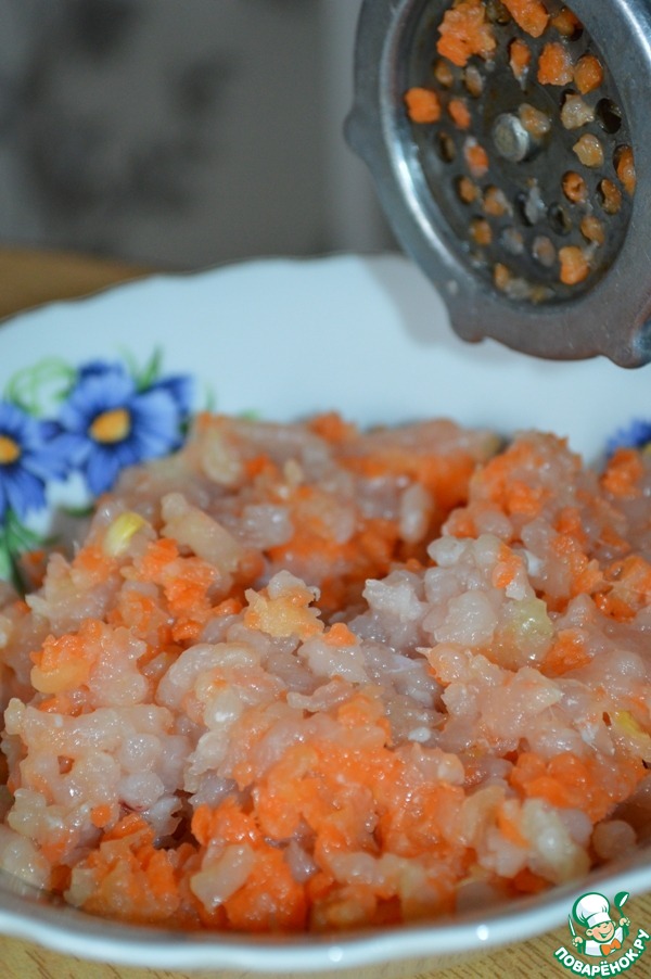 Лук и морковь очистить. Прокрутить через мясорубку вместе с куриной грудкой. А лучше всего пробить все в комбайне. Добавить цедру и перец и все хорошо перемешать.