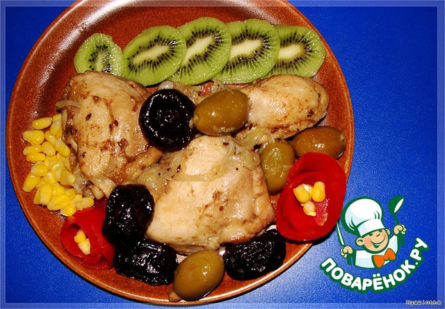 | Ну не знала я, как назвать это блюдо. В оригинале просто - куриные ножки с оливками, но это скучно. А курочка получается замечательная: пряная, сочная, ароматная. И соус вкуснющий! Стоит попробовать. |