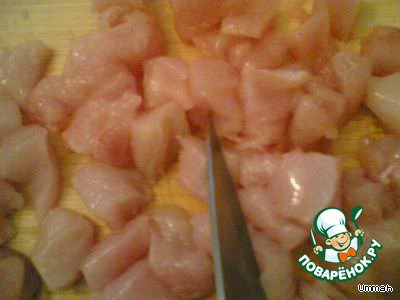 Нарезать куриное филе небольшими кусочками ~ 1-1.5 см.