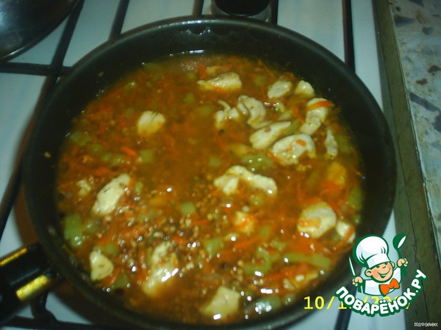 | Рассыпчатая, ароматная гречка со сладким перцем и куриным филе! |