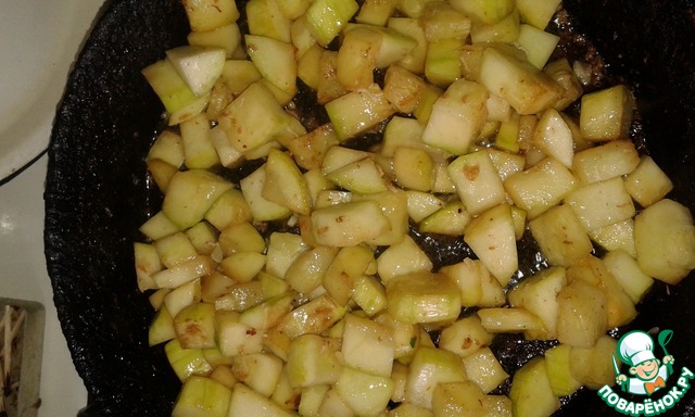 Обжариваем кабачок на масле, после куриного филе. Обжаренный кабачок выкладываем к курице.