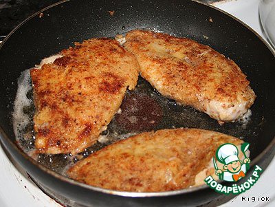 Каждый кусочек обваливаем в муке, потом в яйце, потом в сухарях и напоследок в сыре, далее кидаем на сковородку. С каждой стороны обжариваем около 5 минут.