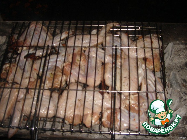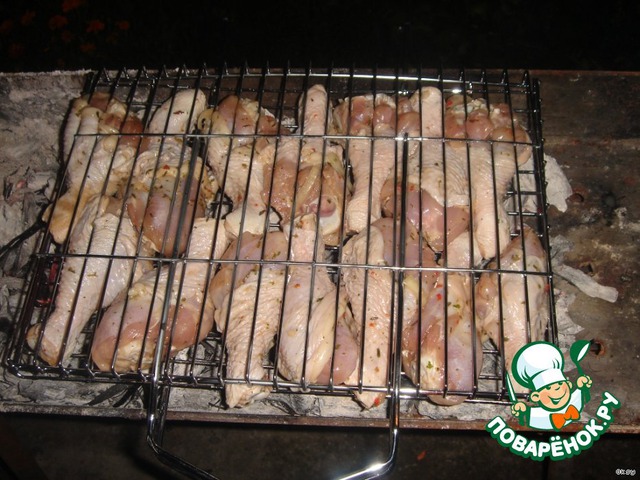 Подготовьте угольки (мы использовали для углей саксаул) и приступайте к жарке. На решетке по отдельности пожарить голени...