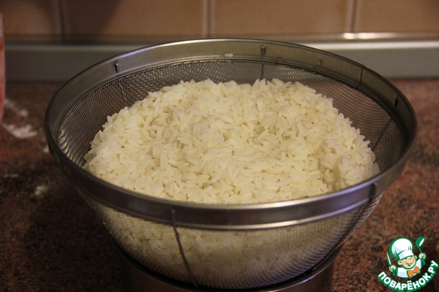 Откидываем на дуршлаг, промываем той же водой, в которой варили рис, солим и заправляем растительным маслом.