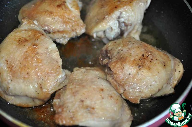 Переворачиваем бёдра, жарим с обратной стороны (около 8 минут).