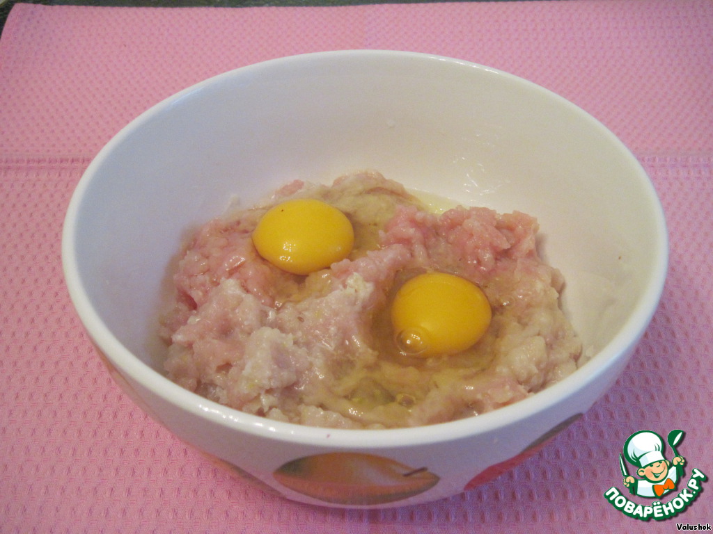 Готовый фарш посолить, поперчить, перемешать и оставить на 10 минут.