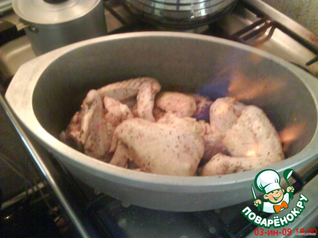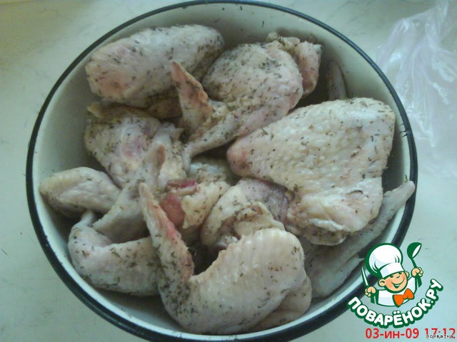 | Приготовление этого рецепта не сложно, но получается очень ароматно и вкусно В рецепте можно использовать разные кусочки курицы, я использовала куриные крылышки. |