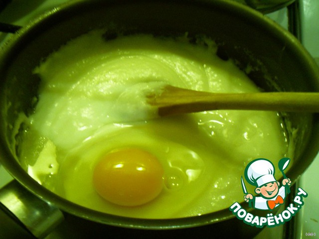 Теперь добавляем в наш соус яйцо и хорошенько перемешиваем.