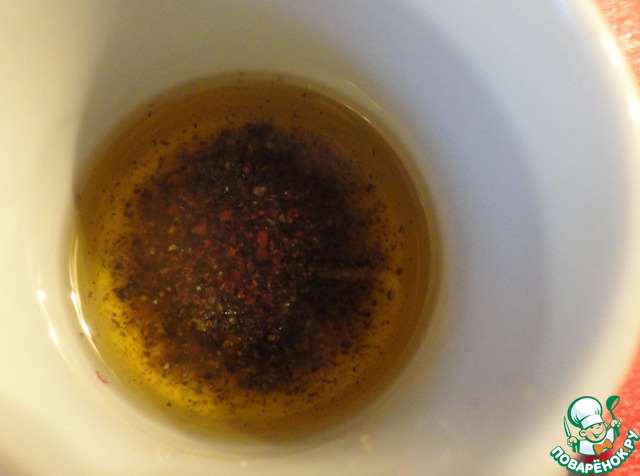 В растительное масло добавляем черный свежемолотый перец.