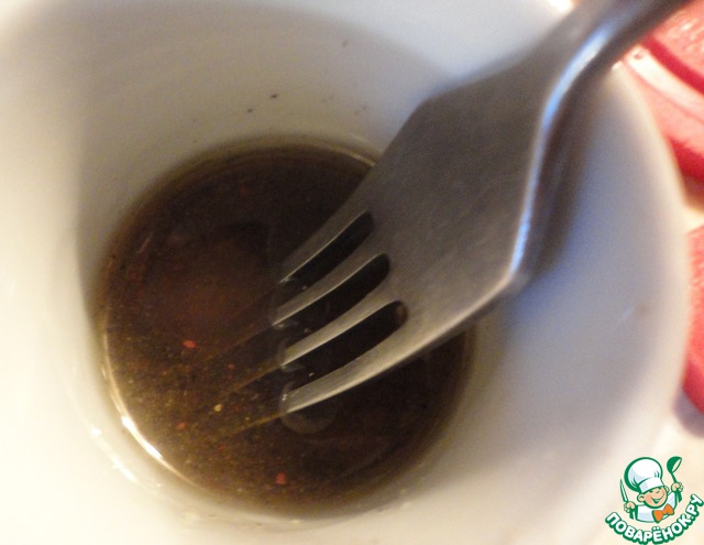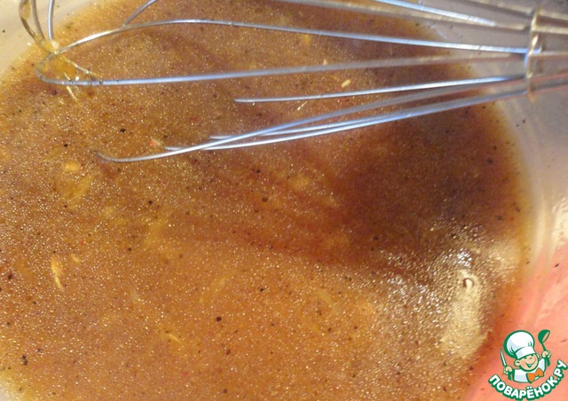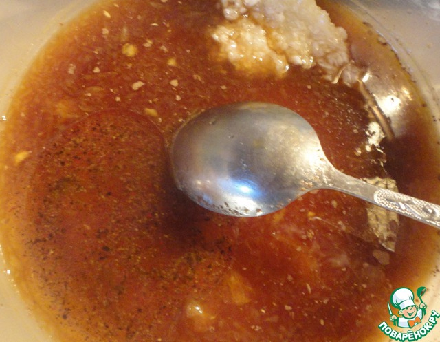 Добавляем в маринад перцовое масло и давленый чеснок.