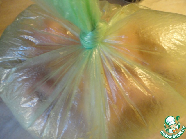 Завязываем пакет и очень хорошо трясем. Отправляем в холодильник как минимум на час. Периодически встряхиваем. У меня цып лежал ночь.