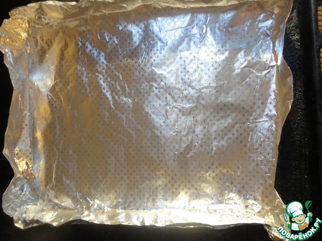 Из фольги формируем "коробочку" по размеру Вашей курочки. Можно взять керамическую форму для запекания. Но я оной не имею и прекрасно обхожусь фольгой.