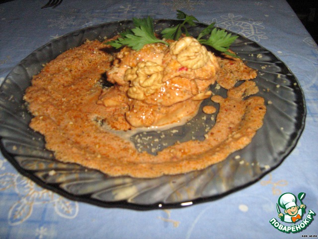 Добавляем сливки доводим до загустения, добавляем молотый грецкий орех. И сервируем.
