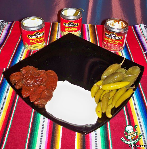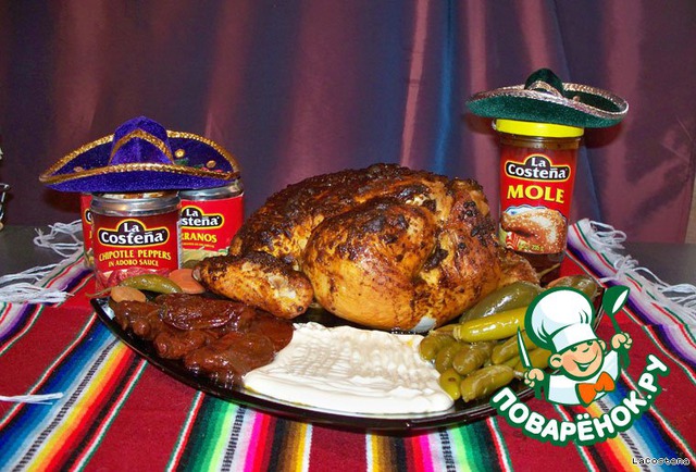 Берем курицу, перцы La Costena Халапеньо и Чипотле, соус Моле La Costena