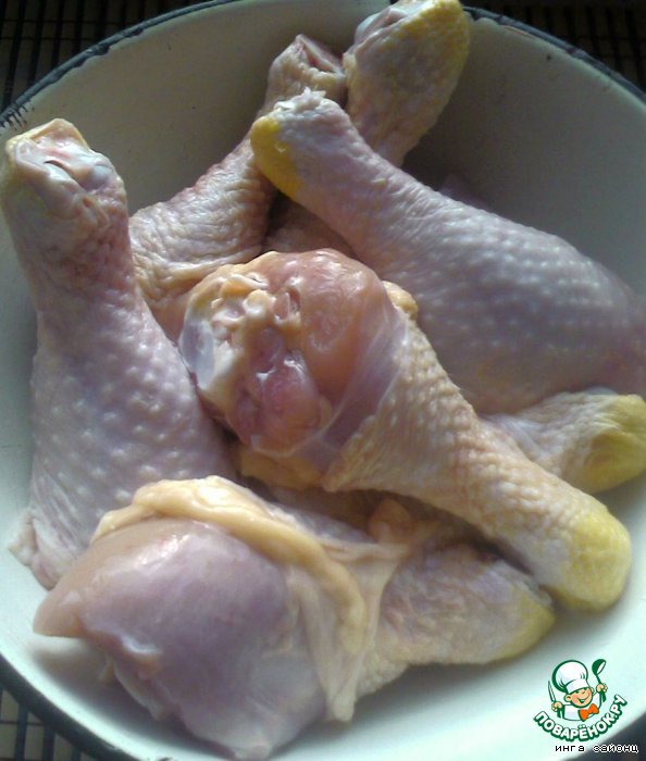 Когда-то давно увидела такое блюдо в гостях. Недавно на каком-то сайте кулинарном. Подумала и решила повторить в своей интерпретации. Мои мужчины очень любят куриные голени. Их и приготовила.