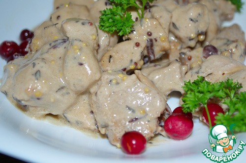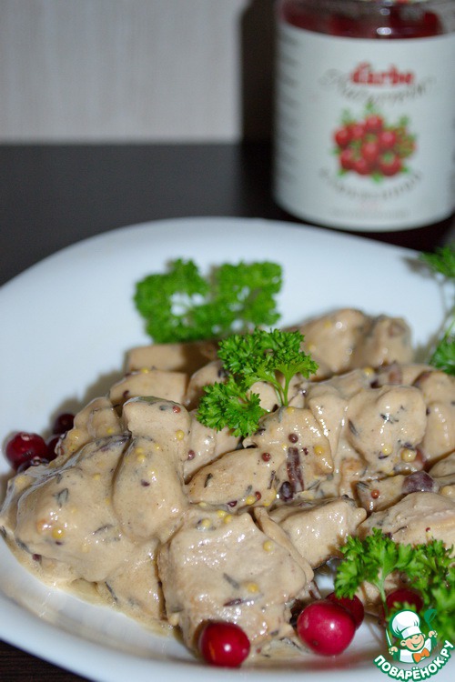 | Курица в очень вкусном, пикантном, с легкой кислинкой-горчинкой соусе. |