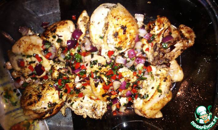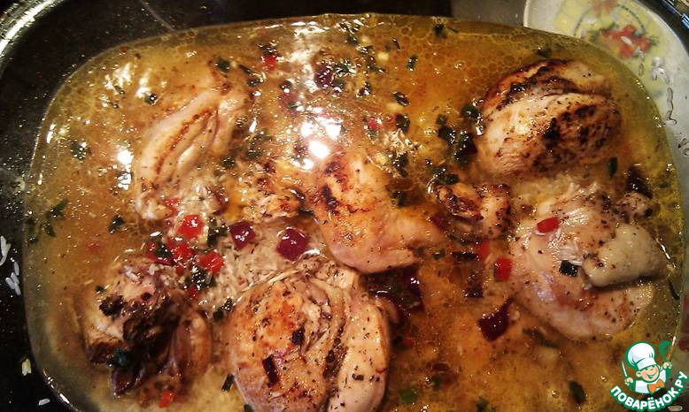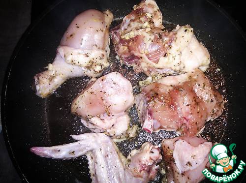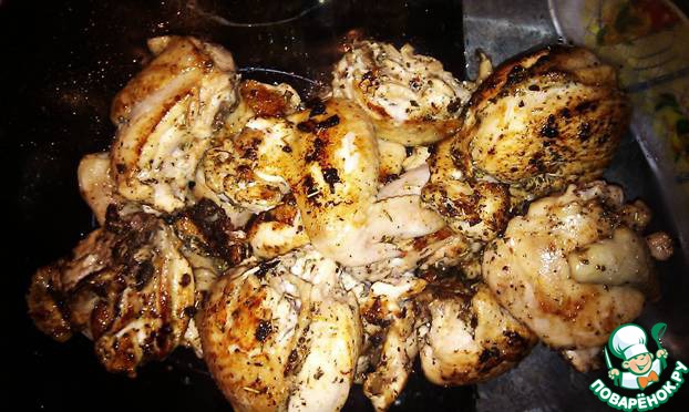 По истечении часа, курицу обжариваем на сл. масле до золотистой корочки.