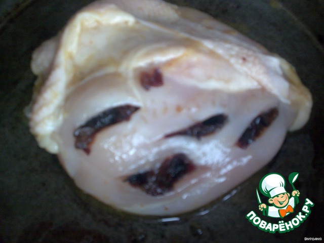 Грудку надрезать в нескольких местах и нафаршировать черносливом.