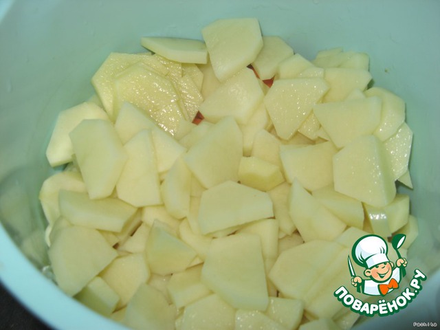 Картофель и морковь очистить, произвольно нарезать.