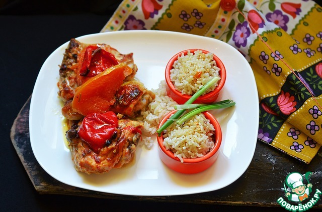 | Что подать с коричневым рисом? Конечно, имбирную курицу с барбарисом! Рецепт восточной кухни, лёгкий до безобразия. Ваша задача только всё соединить и поставить в духовку. Рис просто отварить. То есть требуется всего 10 минут вашего присутствия и участия на кухне. |