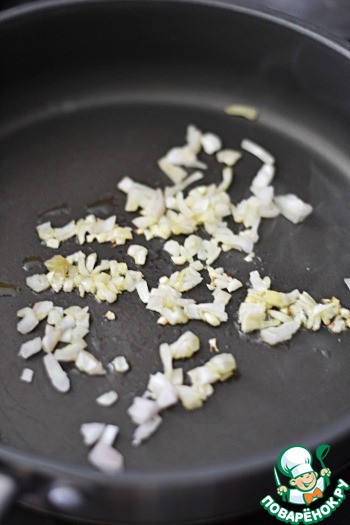 Репчатый лук почистить, мелко нарезать, обжарить на 1 ст. л. оливкового масла до прозрачности и мягкости.