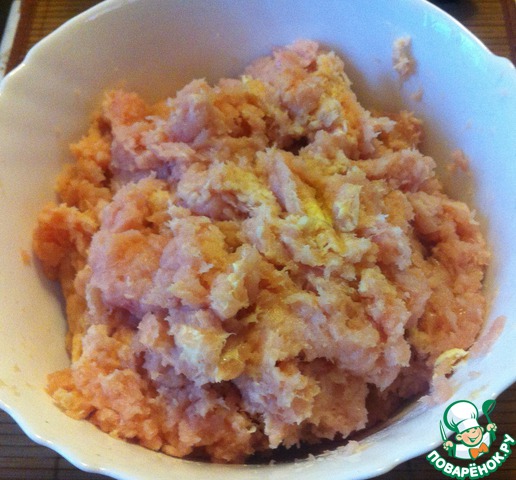 Нарезать филе небольшими кусочками и измельчить в блендере или мясорубке.