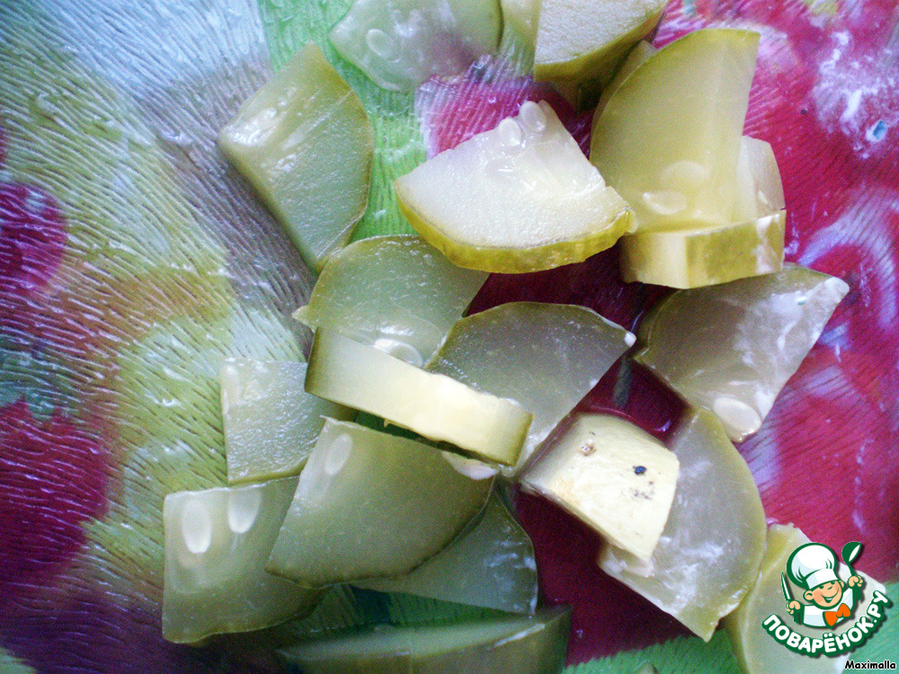 | Надоела курица с яблоками, ананасами, сыром, сухофруктами? Сделай по этому рецепту! Филе получается мягким, имеет нежный ореховый привкус, а огурчик тоже добавит изюминку... Мясо получается совсем не жирным! |